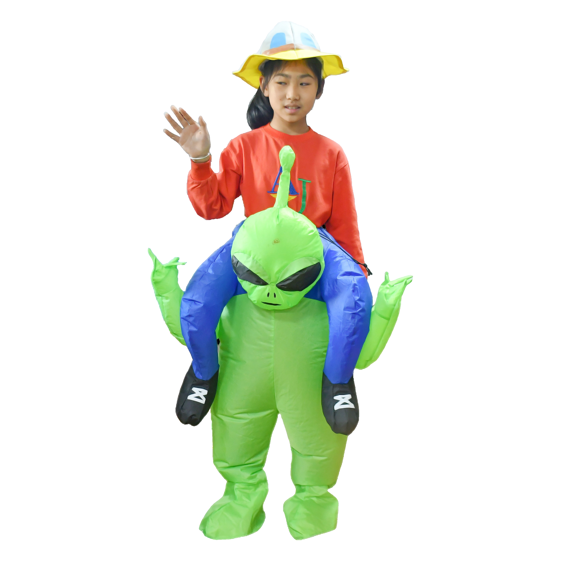 Dit Alienpak trekt onmiddellijk alle aandacht en maakt je het middelpunt van de feestvreugde. Of het nu een verjaardag, themafeest of carnaval is, met dit pak maak jij gegarandeerd indruk.