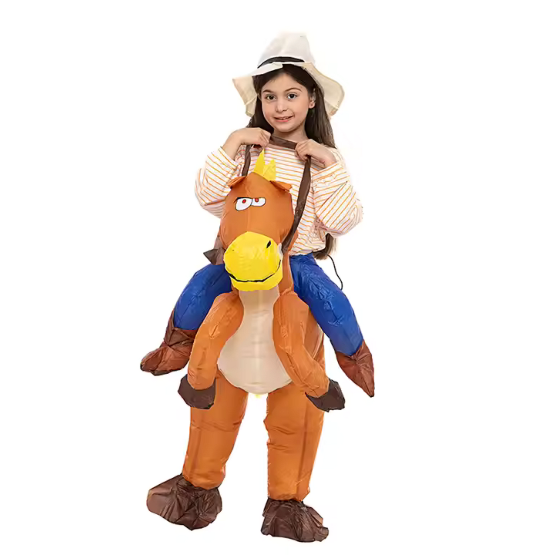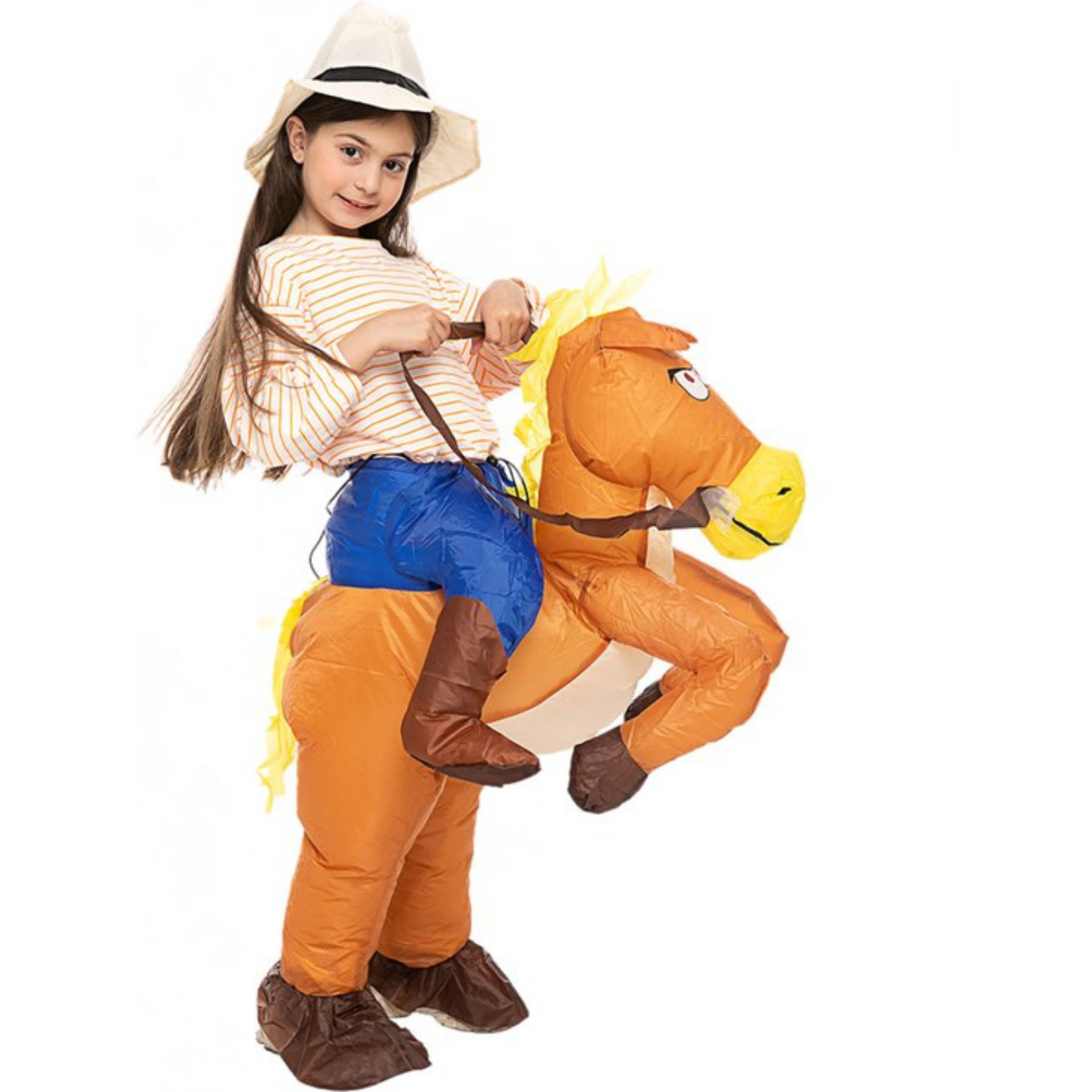 Steel de show en maak van elk feestje een cowboy-avontuur met dit opblaasbare paardrijpak! Origineel, hilarisch en een gegarandeerde blikvanger waar iedereen het over zal hebben.